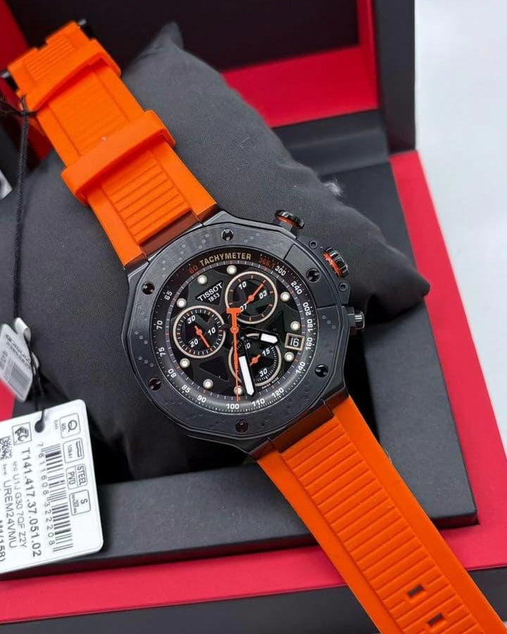 - Modelo: T-Race Cronógrafo (edición deportiva con correa naranja)